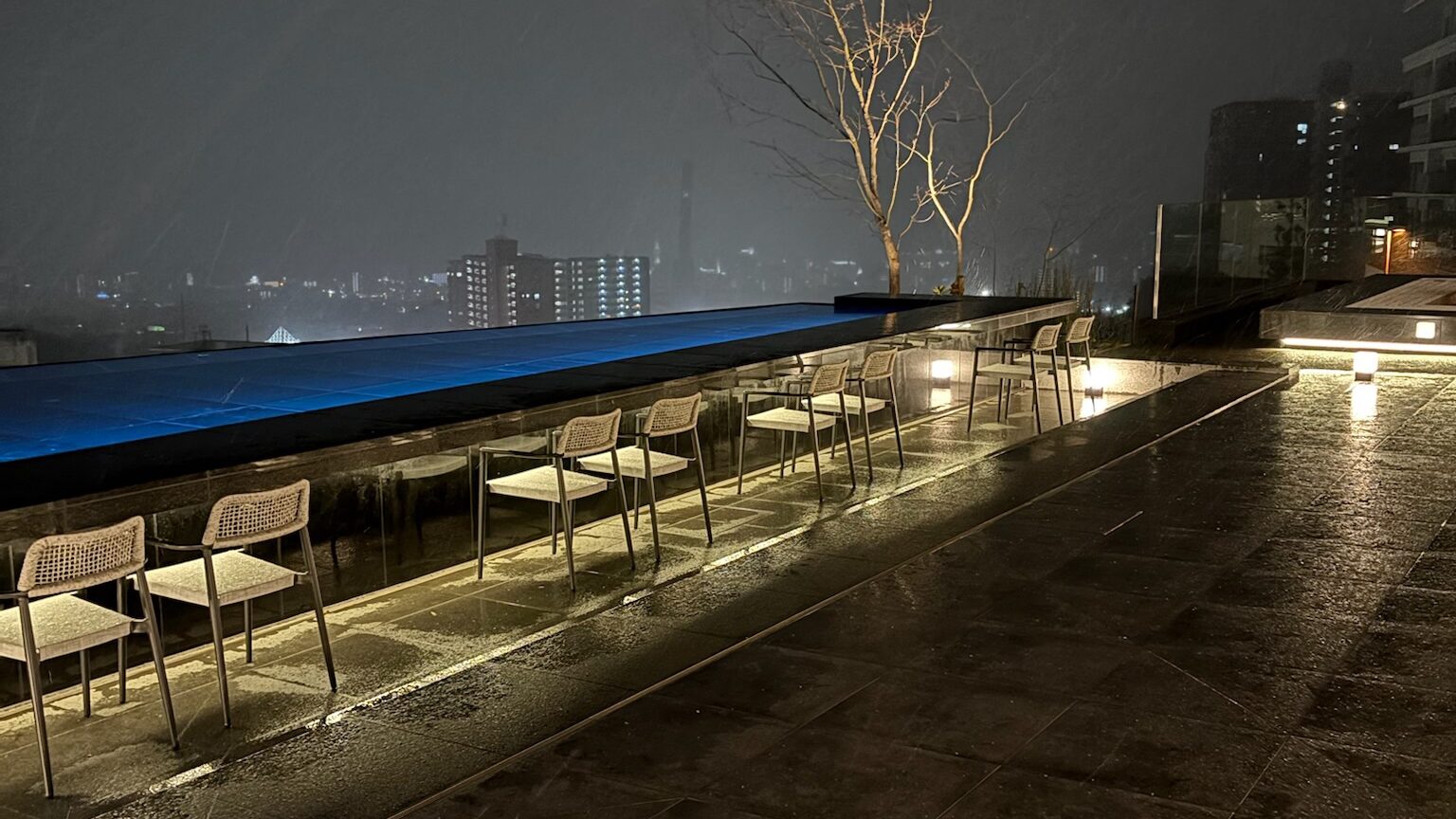 ライトアップされたプールが