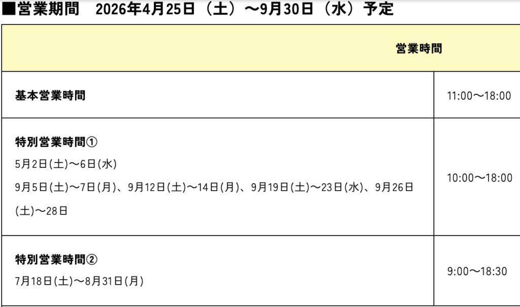 特にオープン時間が日によって変わりますので要注意です⚠️