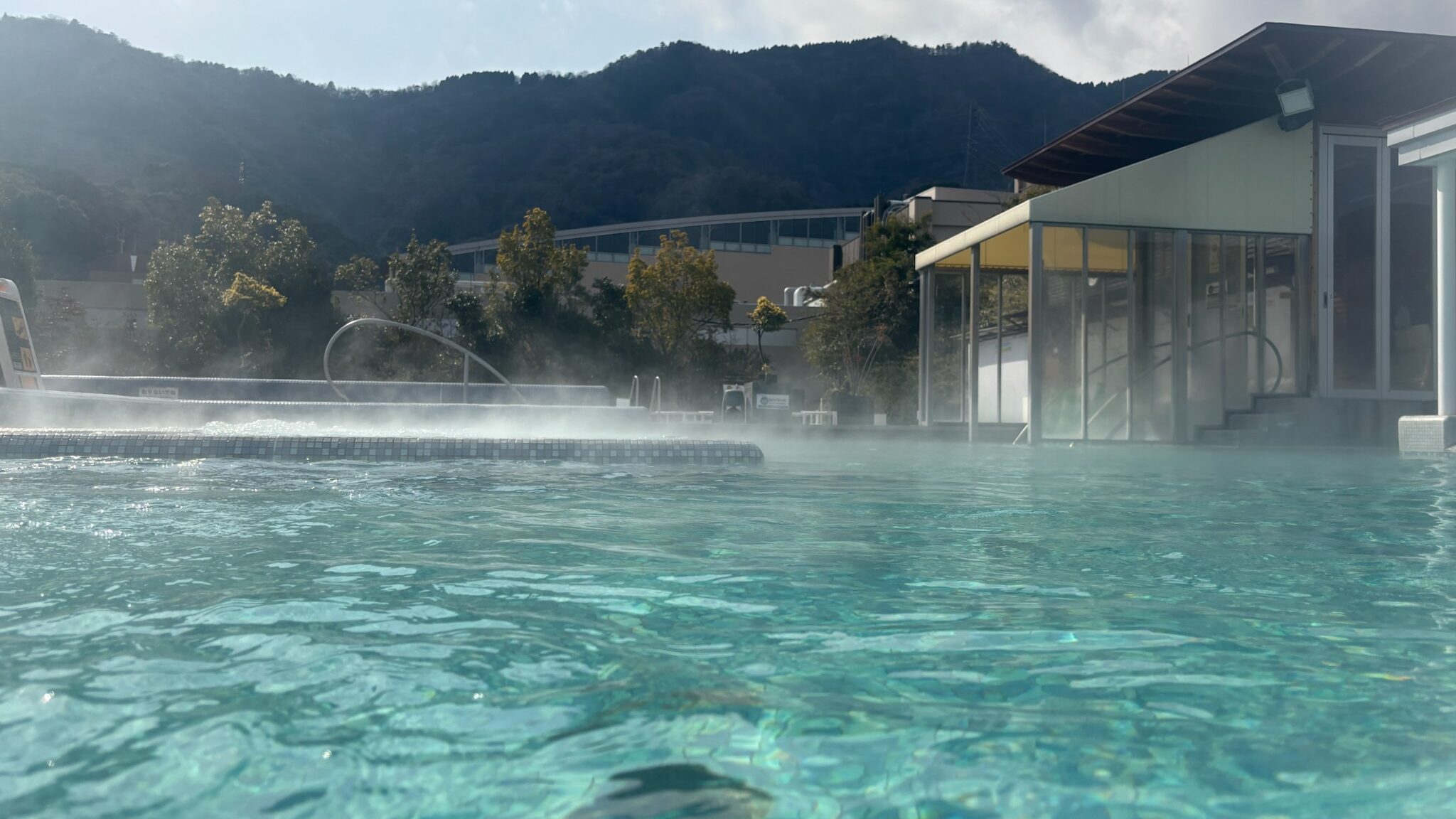 温泉のように見えますが、温泉場別にあります。これはアクアガーデンという名のプールなのです。